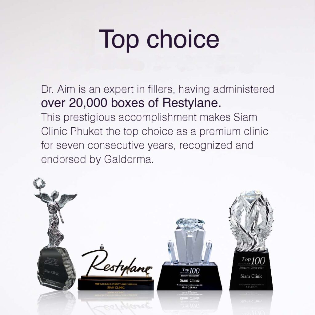 Siam Clinic has proudly been awarded the Top Premium Clinic for Awarded annually from 2017 to the present by Galderma, the global brand behind Restylane.